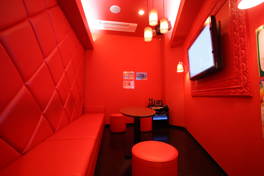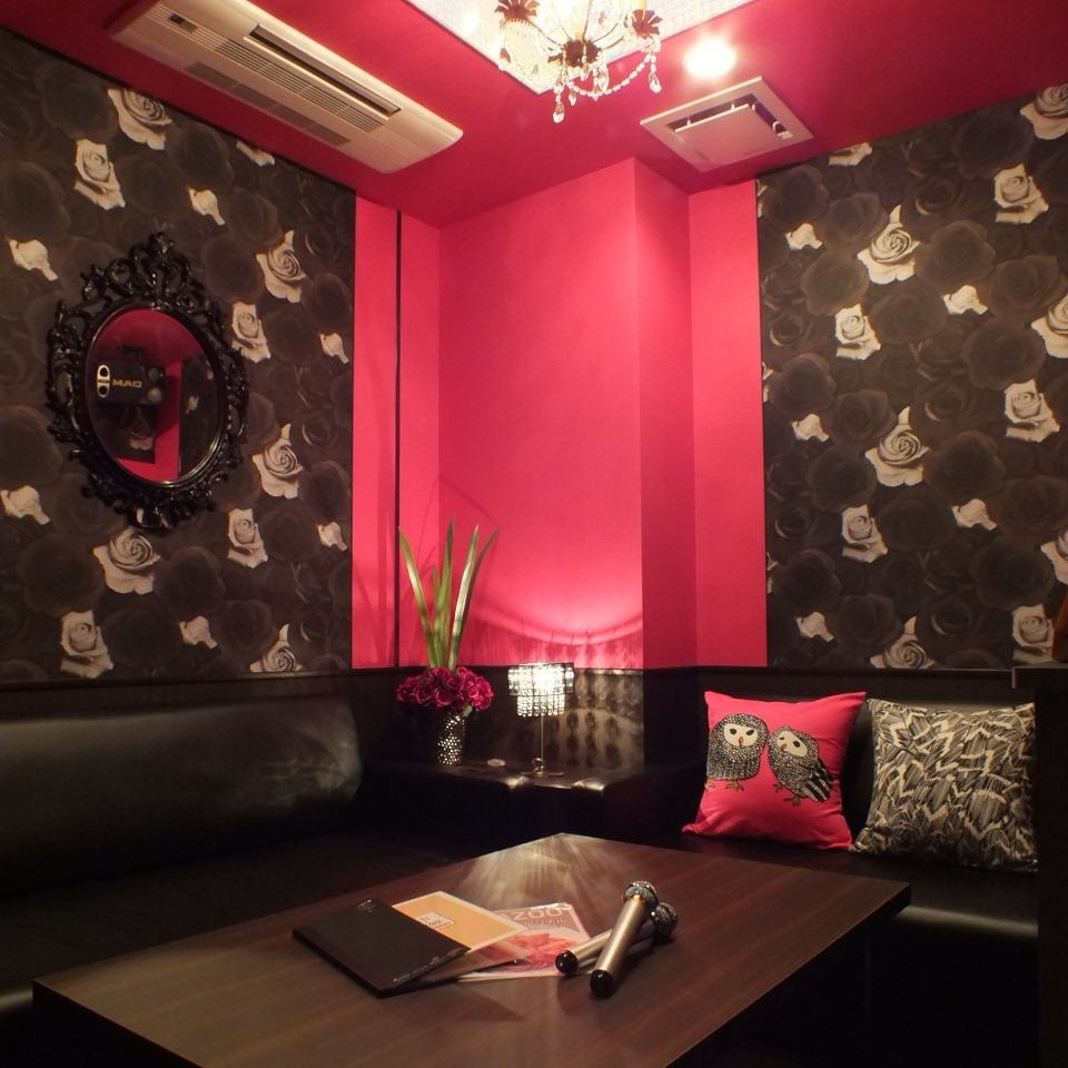 池袋西口店では女子会用のお部屋が用意されています。真っ赤なソファーとかわいい壁紙がおしゃれ♪