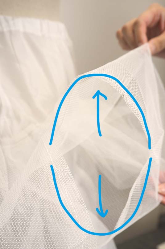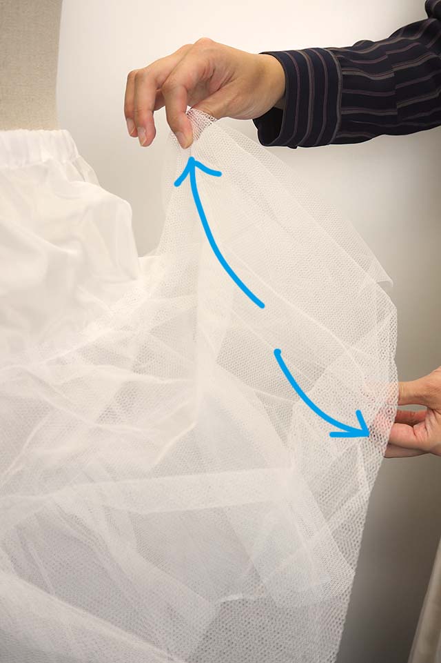 パニエのチュールが袋状になっているので上下に開くように広げるだけです!