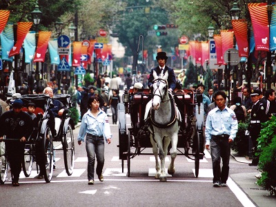 毎年10月31日~11月3日にかけて行われる馬車道まつり、11月3日は人力車・馬車試乗会が開催されます。まるで文明開化の当時を再現したような雰囲気に!