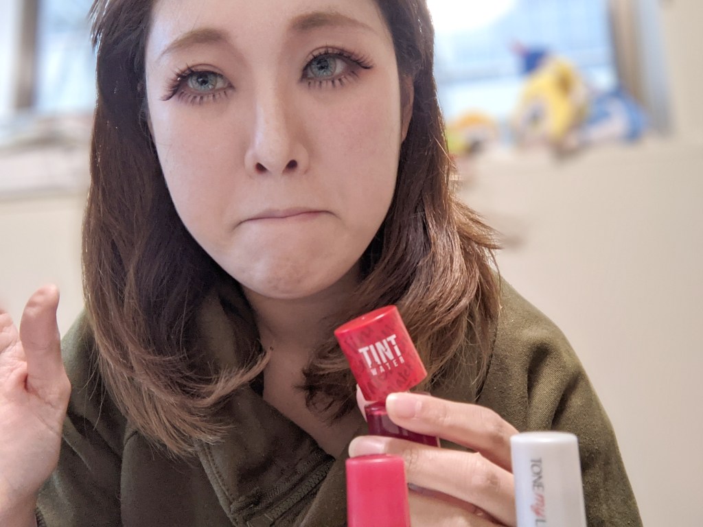 メイク紹介だからと思ってメイクの一連の流れをやっておこうと思いウィッグ被る前にリップ塗っちゃいました。