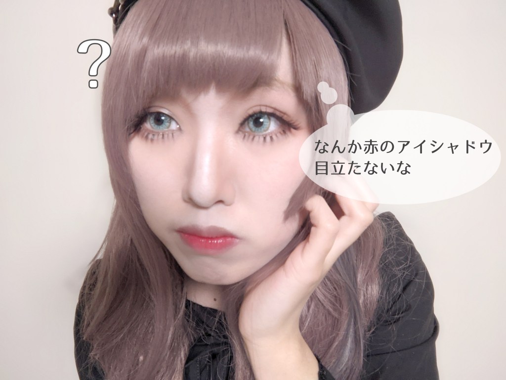 と思ったので目尻にあとから赤シャドウ塗り足しました。