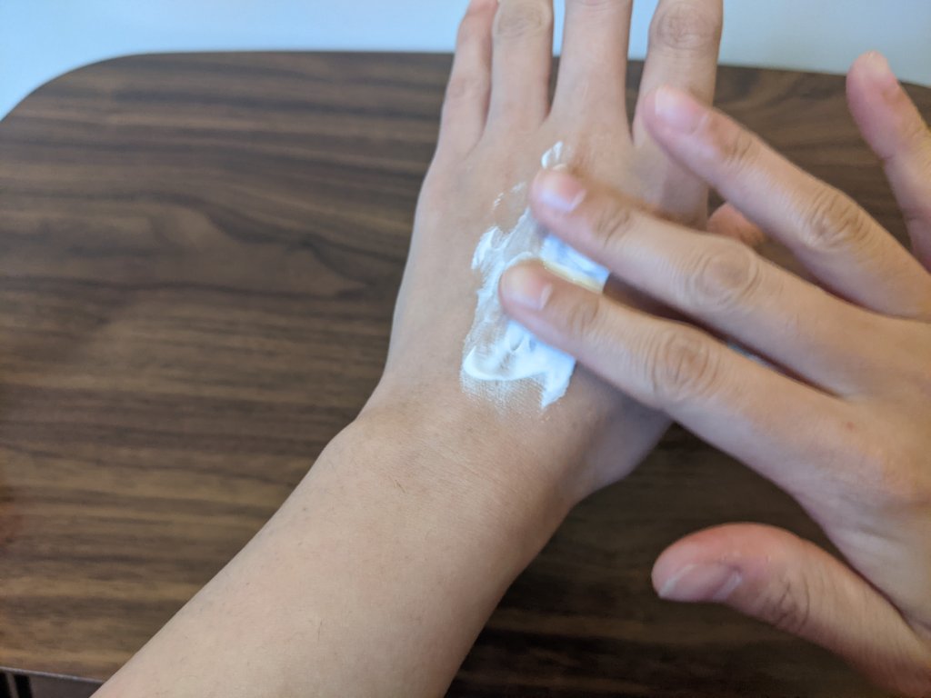 顔は白くしたけど、首や手は何もしてないと違和感あるのでこのクリームを塗るわけです。