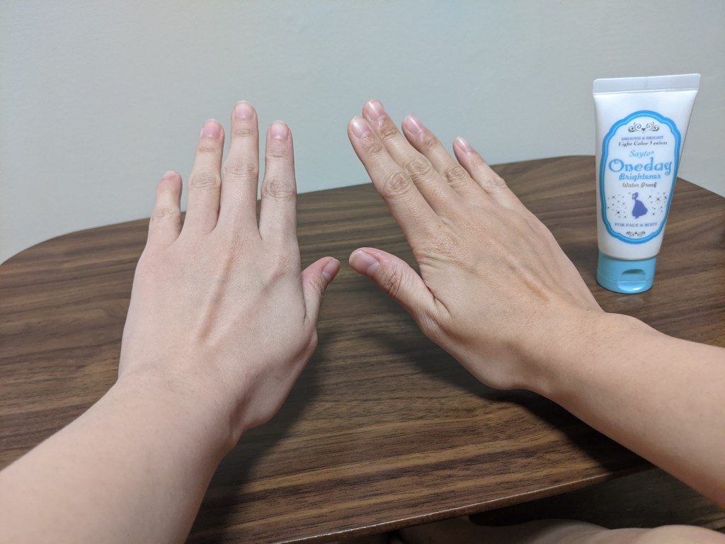 こちらはワンデイブライトナーという、塗ると肌のトーンが明るくなる(白っぽくなる)クリームです。ボディファンデーションっていうんですかね?